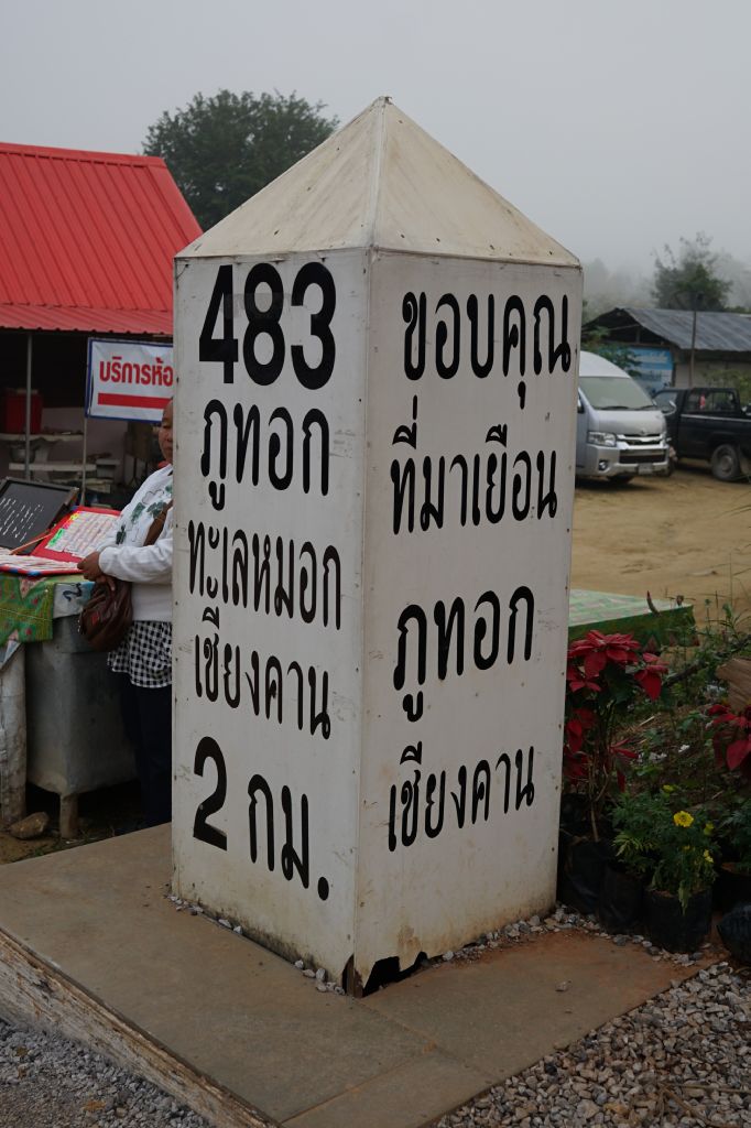 まあ、このスポットを知っている方はもちろんのこと、写真の垂れ幕のタイ語を読める方ももうお分かりだと思いますが、今日はこの山の上で雲海&日の出を見に来たわけですね。