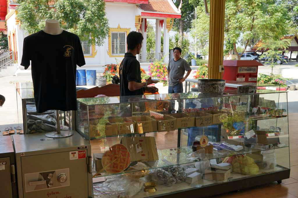 その下、お坊さんおまじないコーナーの前には、仏具関係の売店が並んでいます。
