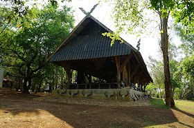 向こうのあずま屋は、なんか土台の周りに水牛の骨並べていますね。