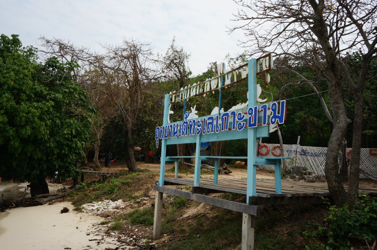 目的は…既に手前(写真だと右側)の青文字の看板にも書いてあるように、カーム島(เกาะขาม)に行くためですよ!
