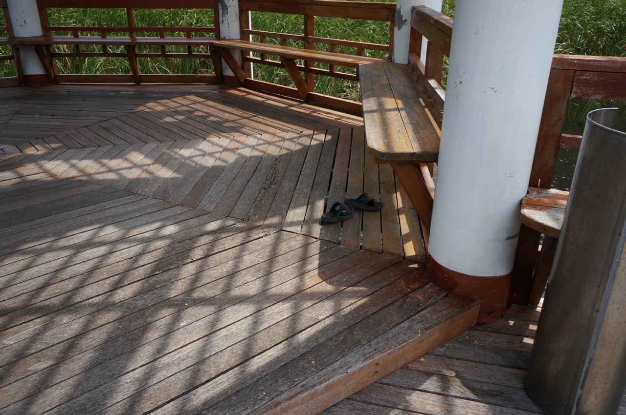 本来なら、この写真のように、湿地の中をこのような橋が張り巡らされていて、蓮ののお花畑の中を歩き回ることのできるスポットらしいんですよ。