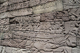 ジャヤーヴァルマン7世の作った建物は、美術的な感じではなく、布教や自分の偉大さの誇示?目的なので、庶民にもわかりやすい感じのレリーフを…
